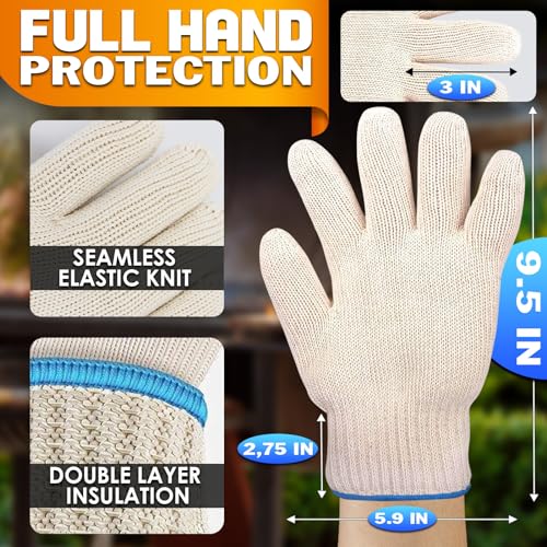 Heat Resistant Gloves for Grilling: The heat gloves for cooking can resist temperatures up to 932°F due to double layer insulation. These grill gloves heat proof for men cooking gloves can ensure great protection to your hands when taking and holding hot dishes.