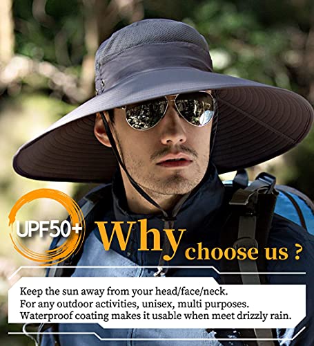 HLLMAN Super Wide Brim Sun Hat-UPF 50+ Protection,Waterproof Bucket Hat for Fishing, Hiking, Camping,Breathable Nylon & Mesh