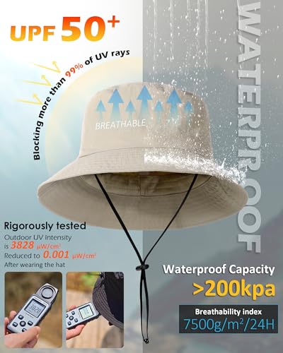 Waterproof Bucket Hat for Women Men Rain Hat UPF 50+ Wide Brim Boonie Sun Hat Foldable Summer Floppy Beach Fishing Safari Hat