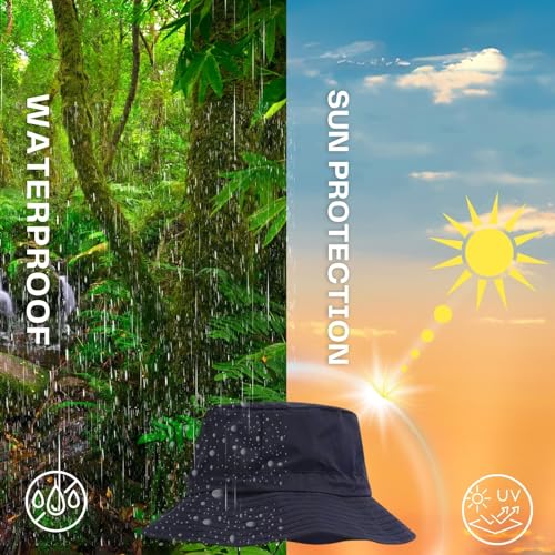 Waterproof Bucket Rain Hat,Foldable Outdoor UV Protection Sun Hats and Quick Dry Boonie Hat for hiking