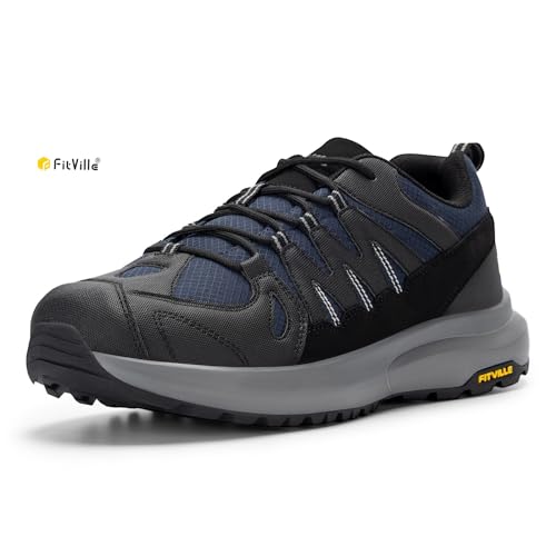 FitVille Men’s Wide Hiking Shoes for Men Go Walking Hiking Shoes Trekking Trails Sneakers with Arch Support
