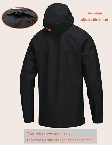 Mens Lightweight Hooded Waterproof Rain Jacket Breathable Raincoat Shell for Outdoor Mountain Hiking