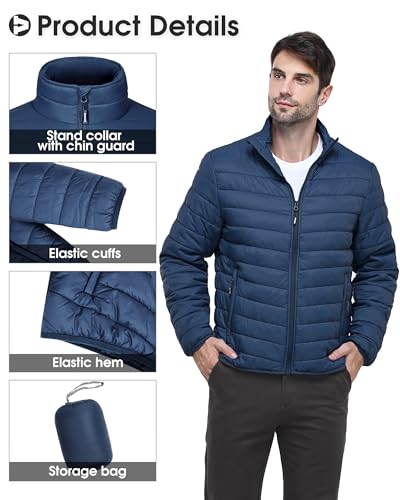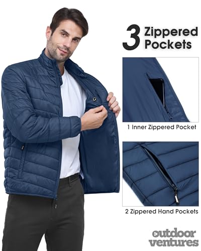 Outdoor Ventures Men’s Lightweight Packable Puffer Winter Jacket Insulated Puffy Coat for Snow Ski Hiking Travel
