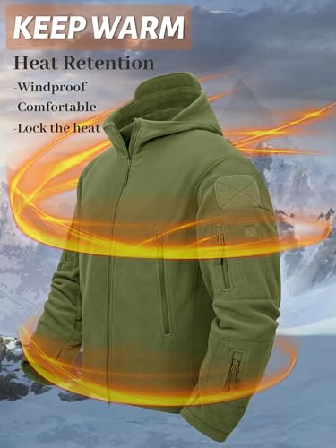TACVASEN Mens Fleece Jacket Full Zip Tactical Hoodies Winter Coats Windproof Hoodies Warm Hunting