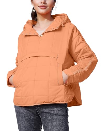 Womens Oversized Hooded Puffer Jacket Lightweight Pullover Hoodies Quilted Dolman Long Sleeve Warm Winter Coat
