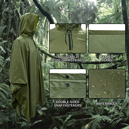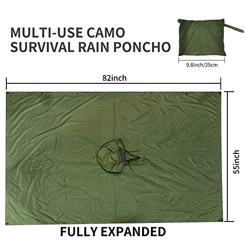 LOOGU Military Camouflage Rain Poncho Waterproof Hooded Raincoat Multi-Use Camo Rain Gear for Camping Hunting Hiking Fishing
