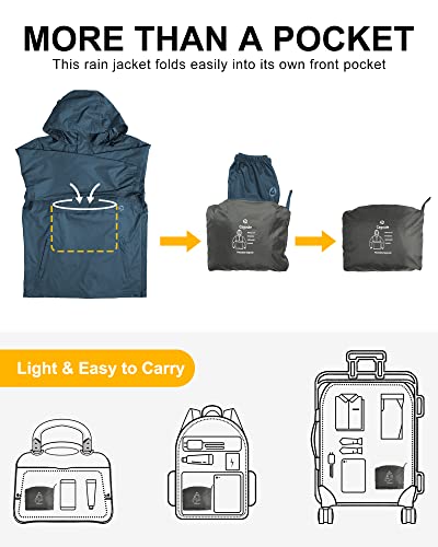 Outdoor Ventures Men’s Rain Jacket Waterproof Lightweight Packable Rain Pullover for Hiking Golf Running