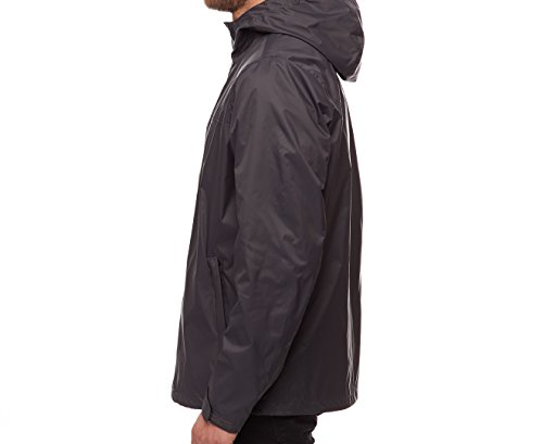Hooded fly front zip front rain jacket with lower zip pockets to keep belongings dry. This jacket is made with a breathable and waterproof shell fabric which will allow vapor molecules to escape, keeping the wearer comfortable during inclement weather.