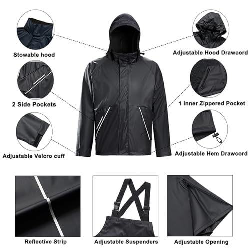 TOWN&FIELD Rain Suits for Fishing Waterproof Rain Gear for Men Women Heavy Duty Rain Coat Jacket with Pants/Overalls