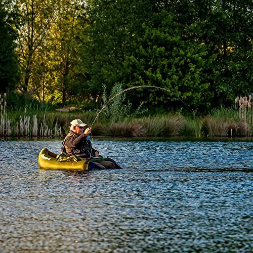 Our Classic Float Tube incorporating the latest thinking in Float Tube design. Manufactured with tough, 600D Olive Green nylon top panels, with black bottom panels so as not to spook the fish. Twin durable welded PVC bladders with top quality one-way valves. The bladders use an improved ‘double-line’ welding system, to prevent leaks. The twin-tube ‘V-Boat’ style, has the tubes swept up to form a bow, providing less resistance and far easier passage through the water, whilst maintaining great stability. Weighing in at just 4.5kg (10lb), our Float Tube can be easily ‘back-packed’ with the shoulder straps provided, for effortless hiking up to hill lochs and reservoirs. Our complete kit contains everything needed for a day’s float tubing – float tube, flippers, dual-action pump, sturdy carry bag for storage and transport, plus adjustable and removable backpacking straps. Inflatable seat and back-rest cushions, for comfort and security – also packs down smaller for storage and transportation. Quick-release stabilizer bar across the front, with quick-release retainer strap to front of seat. *Two large zipped side pockets for storage, with internal dividers *Backrest storage pocket with fluorescent safety panel *Mesh bow storage area for ‘wet storage’ *Mesh line tray with quick-release Velcro attachments for easy exit *Fish measure scale on line tray *Velcro rod storage tabs on each side and across rear of tubes for safe storage of spare rods *Two accessory D-Rings each side *Carry handle at bow. Maximum recommended user weight 18 stone (115kg) Inflated size: 140cm x 107cm Weight: Float tube 4.5kg (10lb); Complete kit 6.5kg (14lb). We are confident we have the best float tubes on the market. Winning design and amazing value for money