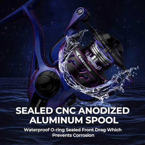 Premium Components: KastKing Royale Legend Pro Spinning Reels are built to exacting standards. Its hardened aerospace Digi-cut aluminum main gear with a Rockwell Hardness of 80 is 30% stronger and 60% lighter than any zinc-alloy gear and also gives you a 6.2:1 high speed gear ratio.