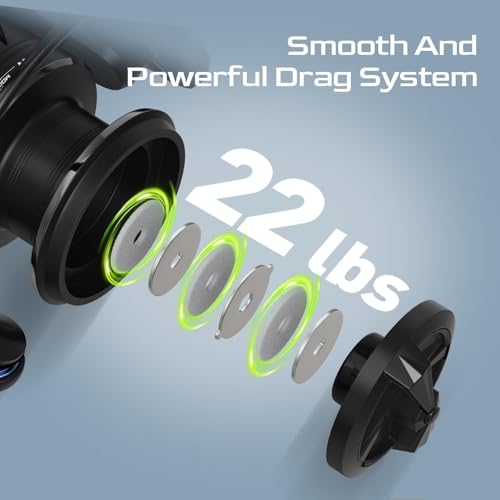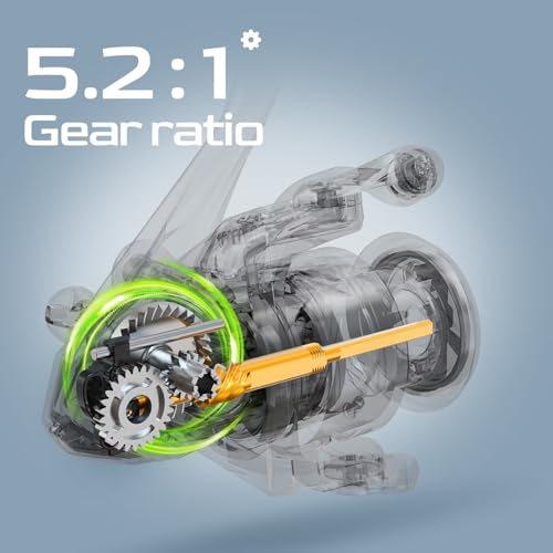 Powerful Drag – HANDING M1 spinning reels boast a cutting-edge 3-layer woven drag system, offering best-in-class drag power of up to 26.5 lbs. The fishing reels spinning are equipped with a precision brass gear ratio of 5.2:1, which delivers powerful performance. The aluminum handle and EVA knob ensure consistent, smooth, and stable operation.