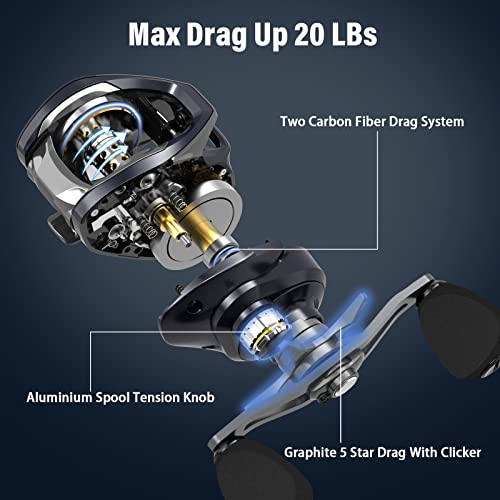 Tempo Resolute Baitcaster Reels – Ultralight Fishing Reels 6.7oz, Super Smooth 9+1 BB with 20 LBs Carbon Fiber Drag Baitcasting Reel Perfect for Catfish Blackfish Grass Carp