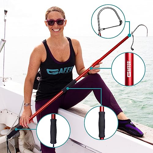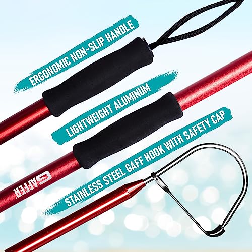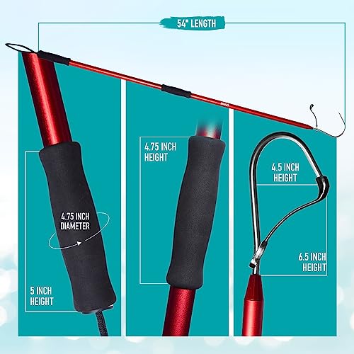 54” LONG GAFF HOOK – Our Gaff for fishing has a lightweight aluminum body for a light yet sturdy feel in your hand. The entire length of the gaff pole is 54” including the hook and the boat hook features a 6.5-inch long x 4.5-inch conically sharpened round-bend gaff hook for fish with a custom profile designed for minimal water resistance and optimal tensile strength when sea fishing.