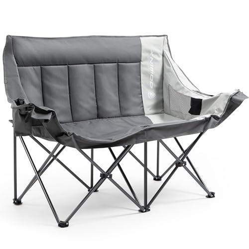 Dowinx Double Camping Chair Portable Folding Outdoor Loveseat with Side Pockets, Lawn Chair Camping Couch for Beach/Outdoor/Patio, Padded Seats & Armrests Supports up to 440lbs, (Grey PRO)