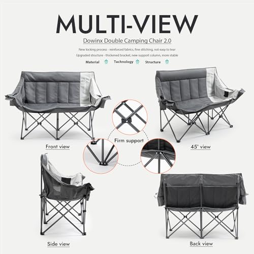 Be the first to review “Dowinx Double Camping Chair Portable Folding Outdoor Loveseat with Side Pockets, Lawn Chair Camping Couch for Beach/Outdoor/Patio, Padded Seats & Armrests Supports up to 440lbs, (Grey PRO)”