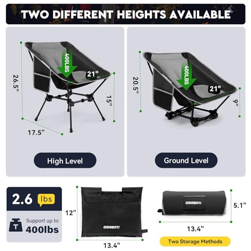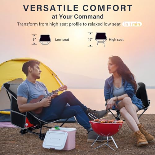 Folding Camping Chairs with Adjustable Height, 2-Way Foldable Backpacking Chair Heavy Duty, Portable Camp Chair Lightweight Compact for Outdoor, Hiking Picnic Beach, Black