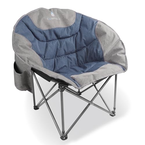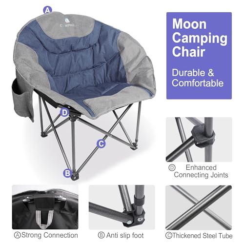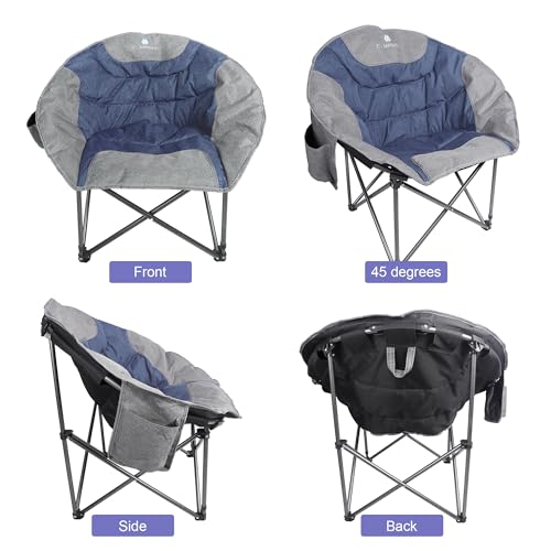 Moon Camping Chairs,Saucer Round Chair for Heavy People, Large Padded Folding Portable Chairs with Side Cup Holder Lawn Chairs Folding Supports up to 300lbs