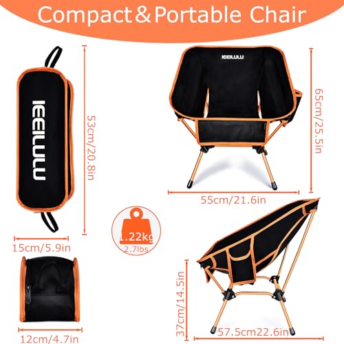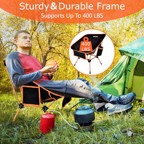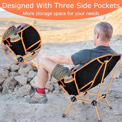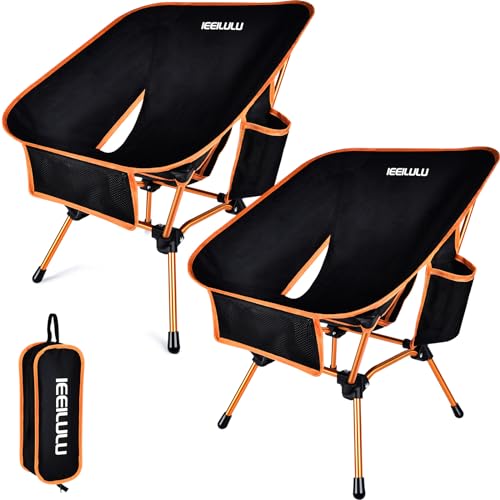 Portable Camping Chairs, Lightweight Backpacking Chair Folding Camping Chair Beach Chairs for Adults Ultralight Backpacking Chair for Outdoor, Camping, Travel, Beach, Picnic (2, Orange)