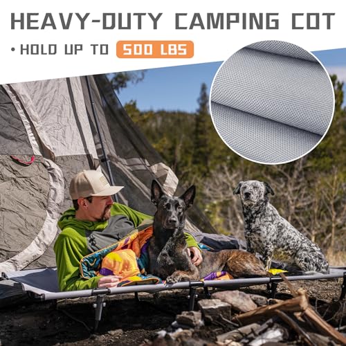 Sturdy & Durable Ultralight Cot: Crafted from THICKER 7075 aluminum alloy, this sleeping cot frame is built to last, hold up to 500 LBS, you can rest easy. Its arc-shaped support design allows for stability on uneven or muddy ground throwing off your sleeping. Just turn around like at home and let the stabilizing non-slip mat do their thing and protects your tent.