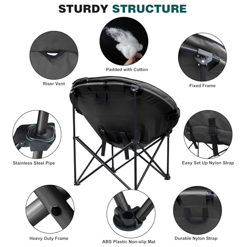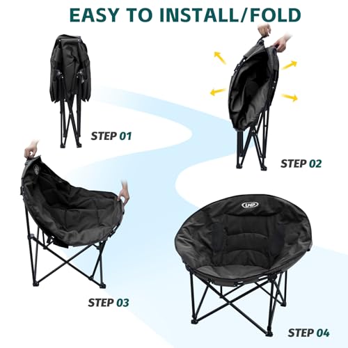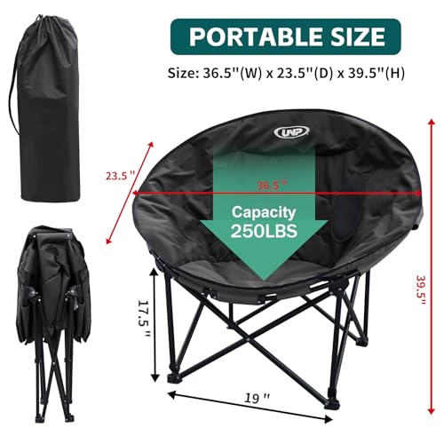 unp Camping Moon Chair, Portable Folding Sofa Chair, Easy Set Up Patio Chair Lawn Seat Camping Stool Chair for Hunting, Fishing, Outdoor, Beach, Picnics, Home (Black)