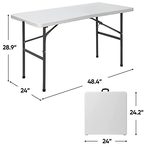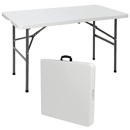 SUPER DEAL Portable 4 Foot Plastic Folding Table, Indoor Outdoor Heavy Duty Fold-in-Half Picnic Party Camping Barbecues Table with Carrying Handle, White