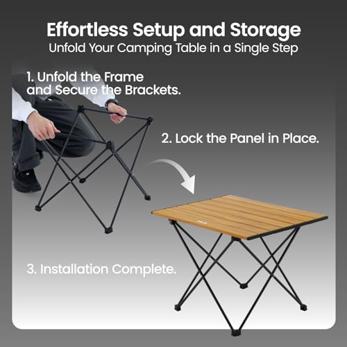 Effortless Setup, Instant Adventure: Experience hassle-free setup with our camping folding table! In just one step, unfold the legs, attach the tabletop, and within 30 seconds, you’re ready to enjoy a stable and reliable camp table. Whether you’re camping outdoors or gathering indoors, Mission Mountain camping table is your loyal companion, ensuring seamless setup and storage. Embrace the simplicity and convenience you deserve, and let the adventure begin instantly!