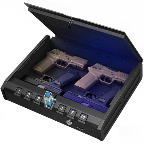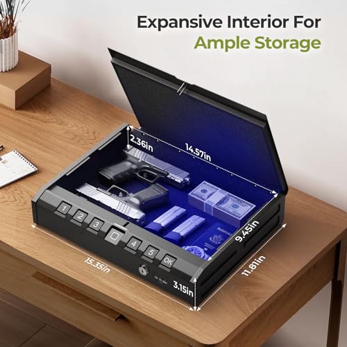 ONNAIS Large Biometric Gun Safe – Fingerprint Pistol Safe with Internal Light, Three Unlock Methods, and Emergency Power Supply, Gun Lock Box for Home, Bedside, Nightstand, and Car Use