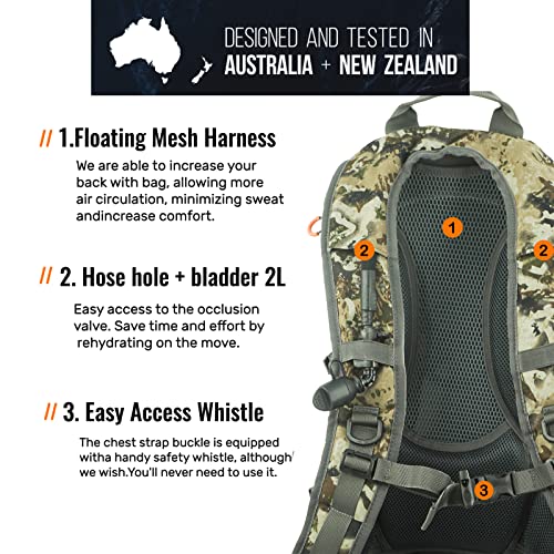 SPIKA Camo Hunting Backpack Tactical Military Bags Waterproof Daypack for 25L Capacity with Water Bladder Removable Hip Belt