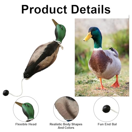 [Dove decoys for hunting]: Dead Duck Dummy’s dangling head mimics a dead duck shot out of the air, providing a realistic training experience for your hunting dog. This feature attracts your pup, making training more engaging and effective.