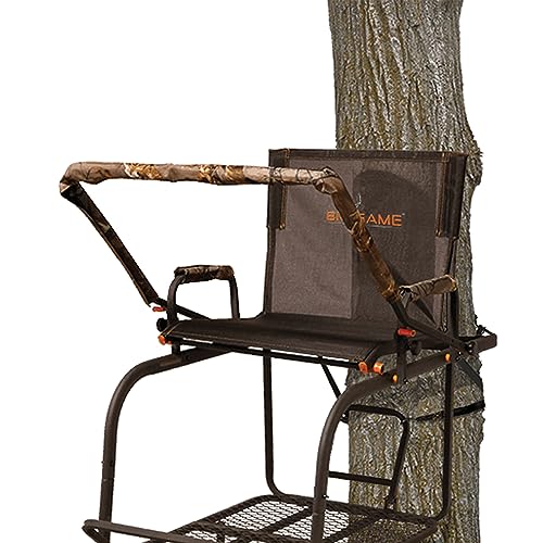When you’re hunting, you need a tree stand that is comfortable while you wait for your prey. Raise the bar of your hunting experience and secure your spot at the top of the food chain. With the BIG GAME Hunter HD 1.5 Treestand with Adjustable Shooting Rail, Extra Wide and Deep Platform for Wide Stances, and Flex Tek Comfort Seating, you can stay comfortable and ready at your favorite hunting spot. Hunt deer and other big game safely from this 1-person ladder tree stand thanks to its included fully-body fall-arrest system safety harness. The extra wide 23- by 18-inch Flex-Tek seat contours to your legs and back for support and comfort, so you’ll never get stiff while you wait. Whether you’re a rifle hunter who likes to sit or a bow hunter who likes to stand, this ladder tree stand provides the space you need. While you sit, you can adjust the padded shooting rail to suit your needs. The shooting rail sits at 18.5 feet off the ground, so you’ll be far above any animals below. For standing, simply slip the shooting rail back and flip the seat back. This ladder tree stand has a large, 23.5-inch-wide by 29-inch-deep-foot platform. This tree stand supports up to 350 pounds of person and gear. You can attach the ladder tree stand to any tree 9 to 20 inches in diameter. With the BIG GAME Hunter HD 1.5 Treestand with Adjustable Shooting Rail, you’re not just hunting; you’re dominating the game