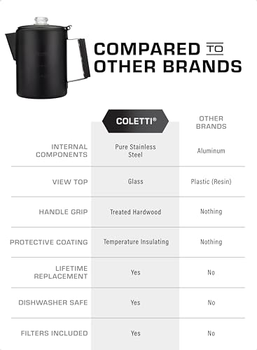 ![COLETTI Bozeman Percolator Coffee Pot — Camping Coffee Pot, Coffee Percolator – America’s Sleekest Percolator – Pure Stainless Steel, NO Aluminum or Plastic [Black Coat, 9 cup]](https://m.media-amazon.com/images/I/41b-Dw4AXAL.jpg)