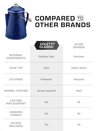 COLETTI Classic Percolator Coffee Pot — Camping Coffee Percolator, Campfire Coffee Pot – Camping Percolator for Groups — Brew for the Whole Campsite (Blue, 12 Cup)