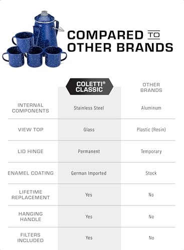 ![COLETTI Classic Percolator Coffee Pot & Enamel Mug Set — Camping Coffee Pot, Enamel Coffee Mug – Complete Nostalgic Bundle – German Imported Enamel Powder [Blue, 12 Cup] [12 oz, Set of 4]](https://m.media-amazon.com/images/I/51WX4J-xhrL.jpg)