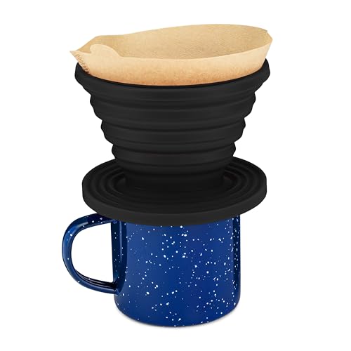 COLETTI Sierra Collapsible Coffee Pour Over Dripper — Camping Coffee Filter — Includes Pack of Paper Filters (Black)