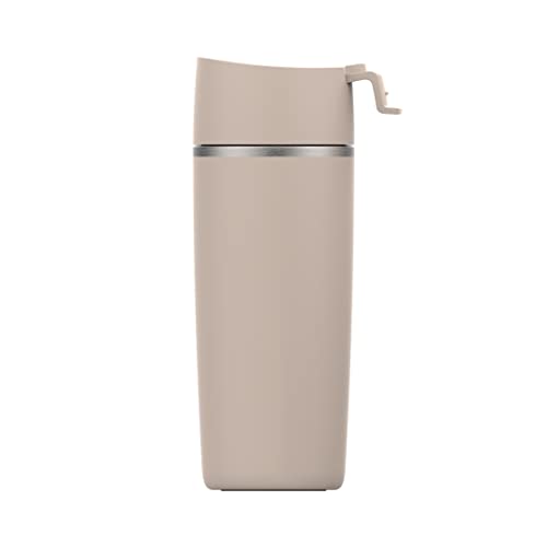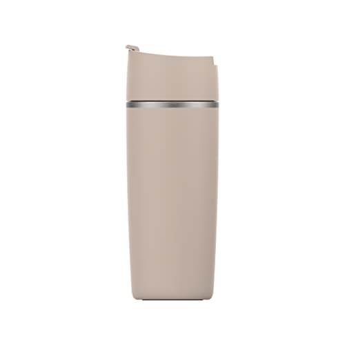 GoodBrew Flip Top,Insulated Coffee and Tea Press,Travel French Press Coffee Maker,Perfect for Commuting, Camping or Traveling (15oz) (Beige Crema)