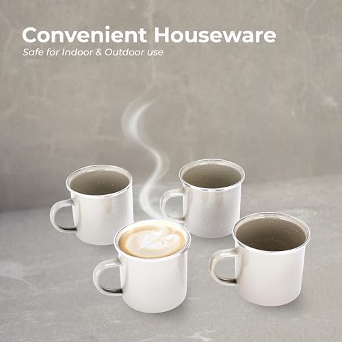 COMFORTABLE GRIP AND TEMPERATURE RETENTION: Our enamel coffee mugs set features open handles for a comfortable grip. The superior insulation of the enameled carbon steel material keeps your drinks at the perfect temperature