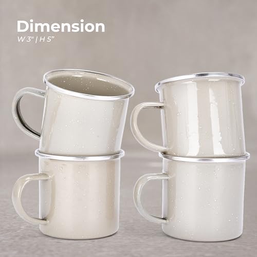 Libken Camping Mugs Enamel – 3x5x3-Inch Hot and Cold Beverage Coffee Mug – Set of 4 Enameled Steel Cups – Versatile Enamel Mugs with Comfortable Handle for Camping or Cozy Morning at Home – Beige
