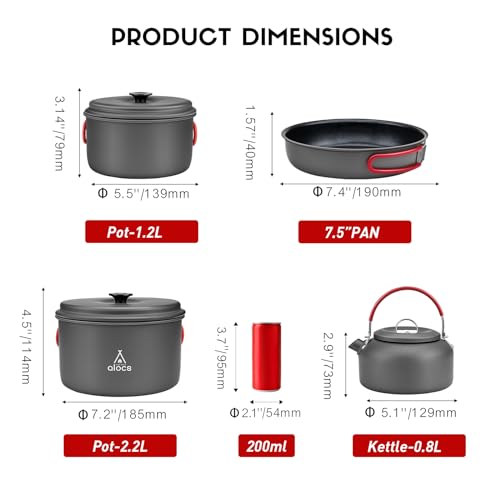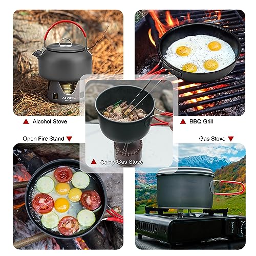 ALOCS Camping Cookware Set,Durable Aluminum Camping Cooking Set, Compact Camping Pots and Pans Set with Kettle, Non-Stick Camping Pan Camping Essentials for Outdoor Cooking, Hiking, and Picnics.