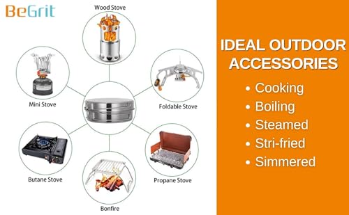 【Built To Last and Easy Clean】BeGrit Camping pot set heat quickly and is survival gear that is built to last. 410 stainless steel material, make it easy to clean and more durable.