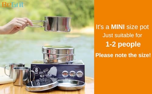 BeGrit Backpacking Camping Cookware Mini Picnic Camping Cooking Mess Kit with Pot and Pan Set for Hiking