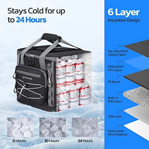 Extra Large Capacity: The measure of Maelstrom 60 can cooler bag is 51*36*32 cm (20.1*14.17*12.6 inch). This hard bottom cooler can easily hold 60 cans drinks of 330 ML (about 58L) to meet your storing needs.
