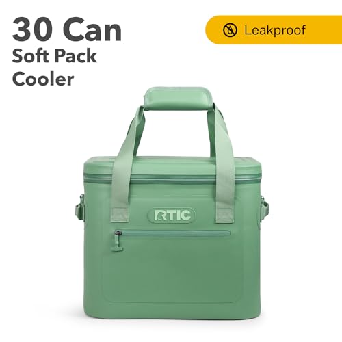 RTIC Soft Cooler 30 Can, Insulated Bag Portable Ice Chest Box for Lunch, Beach, Drink, Beverage, Travel, Camping, Picnic, Car, Trips, Floating Cooler Leak-Proof with Zipper, Sage