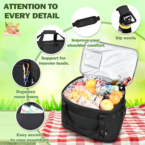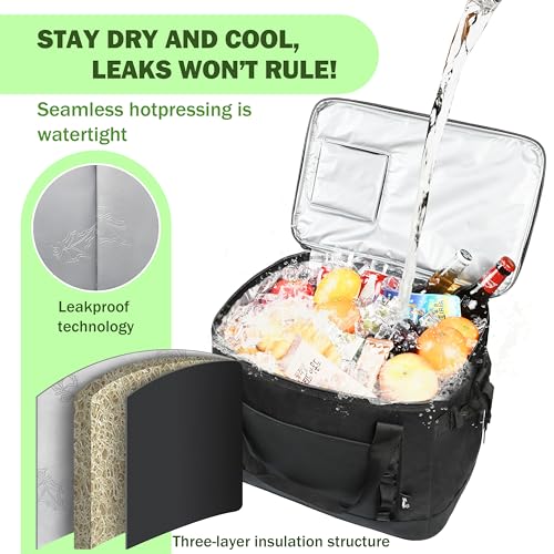 Tirrinia Large Cooler Bag Insulated, 48 Cans Leakproof Soft Camping Coolers, Portable Beach Cooler with Heavy-Duty Handles for Picnic, Beach, Road Trips