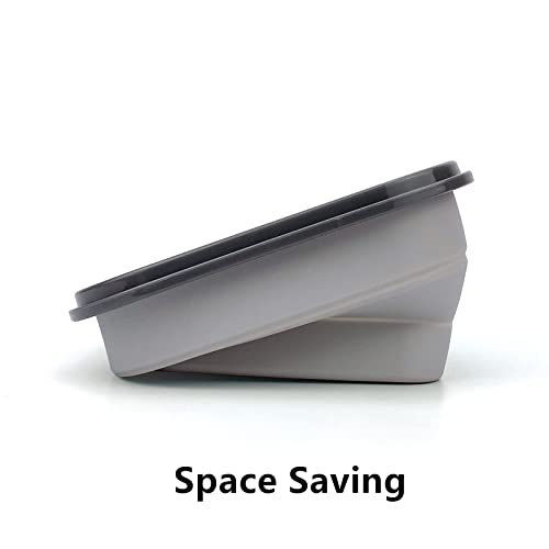 CARTINTS Large 1200ml Collapsible Bowls with Lids, Silicone Food Storage Containers, Space-Saving Meal Prep Containers For Kitchen and Outdoors Camping, Set of 3, Grey