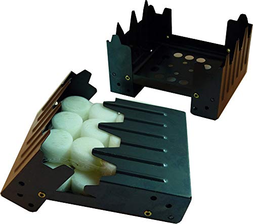 Includes 24 fuel tablets; uses any solid fuel such as Hexamine, Trioxane, or Sterno