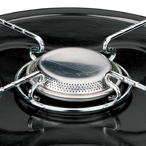This Coleman stove is constructed of an aluminized-steel cooktop and removable, nickel-chrome grates so you spend your time on the trail instead of on cleanup duty. The large 3.25-inch, 7,500 BTU burner is to the side of the propane cylinder in a low-profile fashion that ensures this burner will always be one of Coleman’s easiest and best.