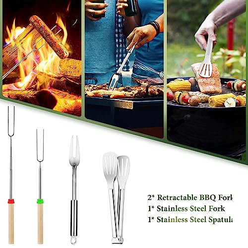 【Food-grade Stainless】 Crafted from food-grade stainless steel, grill tools are durable and long-lasting, have no break, are freely from rusting or deforming. Camping cooking utensils are dishwasher-safe and easy to store. No more worrying about the quality of your tools while immersing yourself in the cooking process.