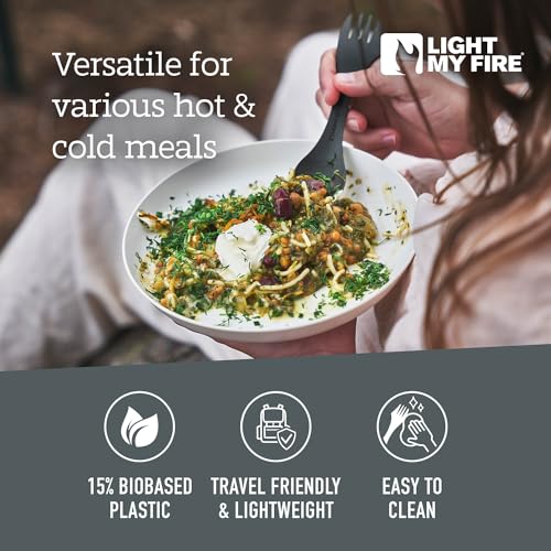 Light My Fire Spork Original 3-in-1 Camping Spoon Fork Knife Combo Reusable Travel & Camping Utensils Lunch Spork Outdoor Backpacking Hiking Picnic Utensil BPA Free, 2-Pack Orange/Black