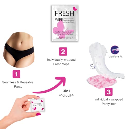 Emergency Panties 3in1 Hygiene Kit Includes Seamless Bikini Underwear, Fresh Wipe & Liner Accidents Travel On-The-Go Toiletry Kit